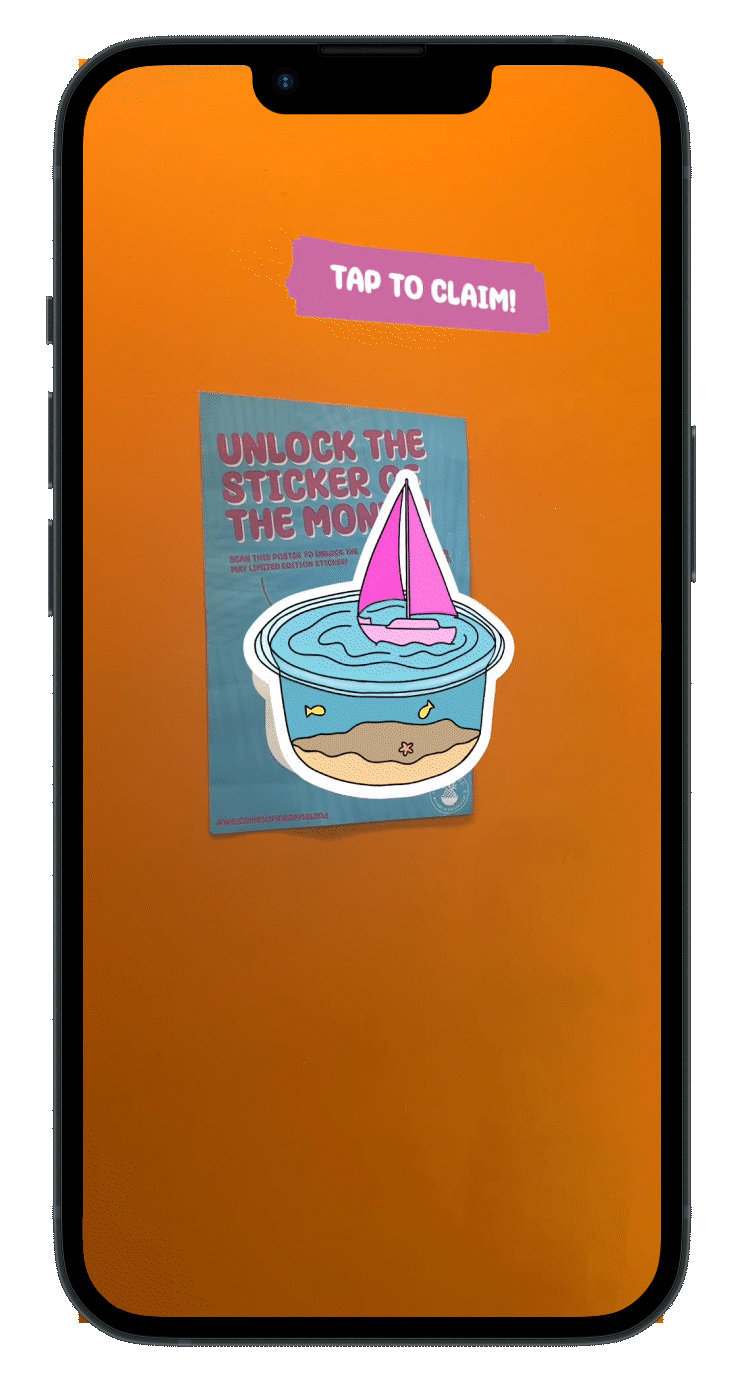 Playa Bowls was looking for a way to increase community engagement and expand their rewards members lists. I created an in-store augmented reality experience where users are able to access the limited edition sticker of the month before its official release date. This allows for more excitement and awareness about this promotion outside of just social media.